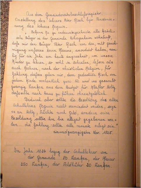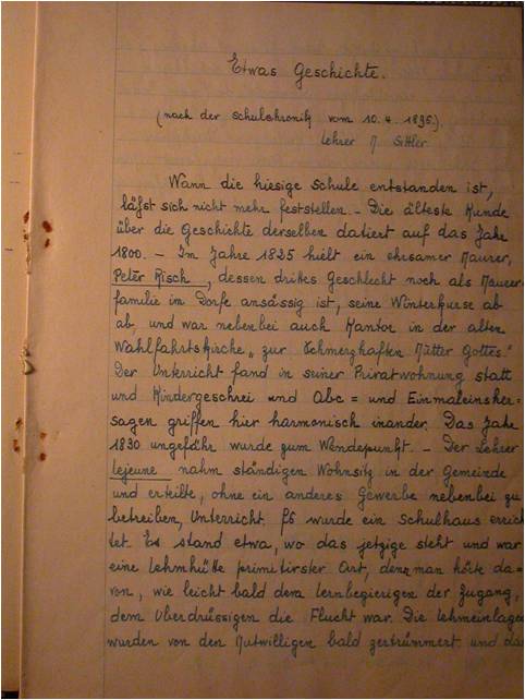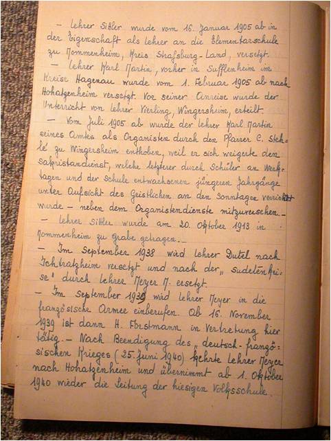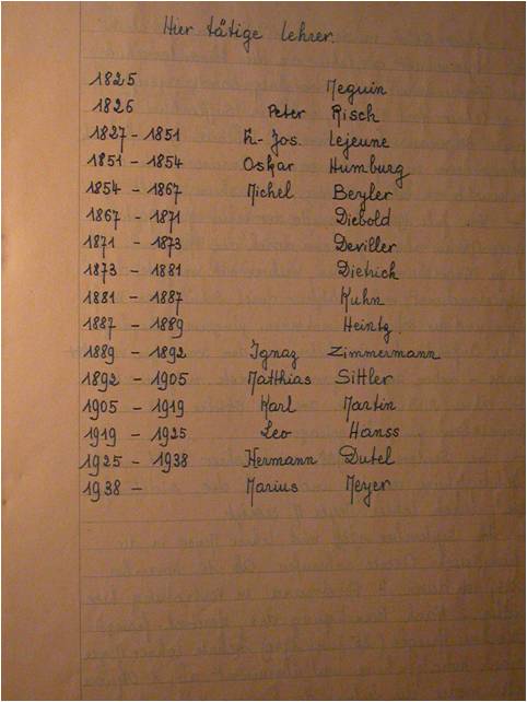 Marius Meyer instituteur à Hohatzenheim écrivit une première version de l’histoire de l’école en 1943 alors qu’il était sur le point d’être incorporé dans la Wehrmacht.